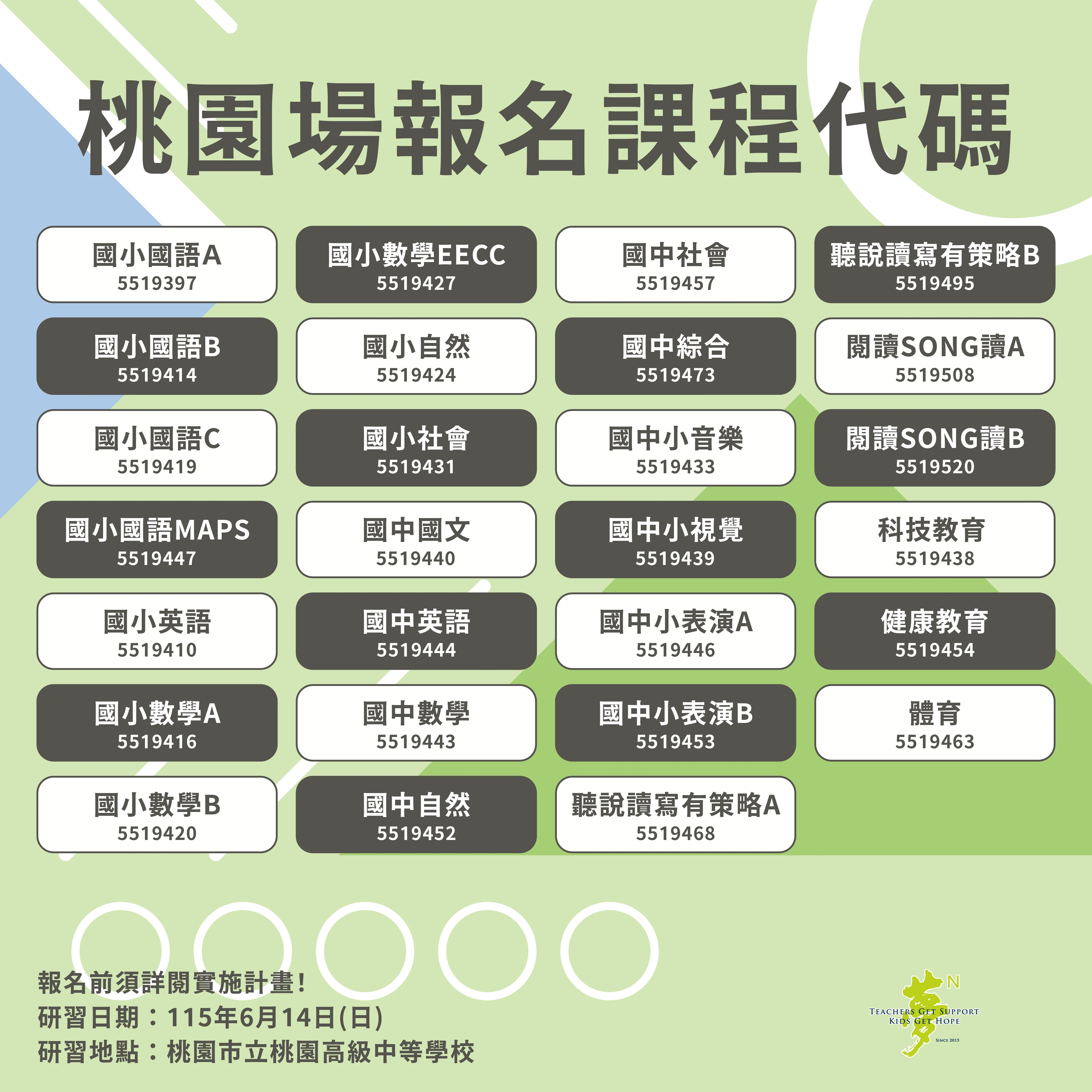 5.第一階段各班「全國教師在職進修網」之報名,課程代碼如下: